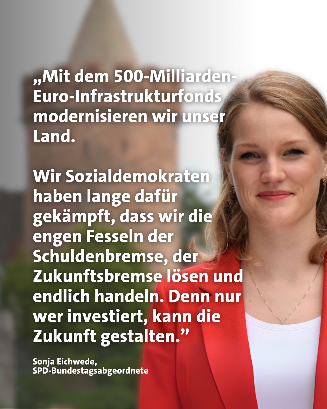 Von 2025-2029 hat die Stadt in ihrem Haushalt bisher mit Investitionen von insgesamt 72,7 Millionen Euro geplant. Pro Jahr also etwa 14,5 Millionen Euro. Mit den mehr als 40 Millionen zusätzlichen aus dem Sondervermögen können wir diesen Betrag also echt wirkungsvoll aufstocken.