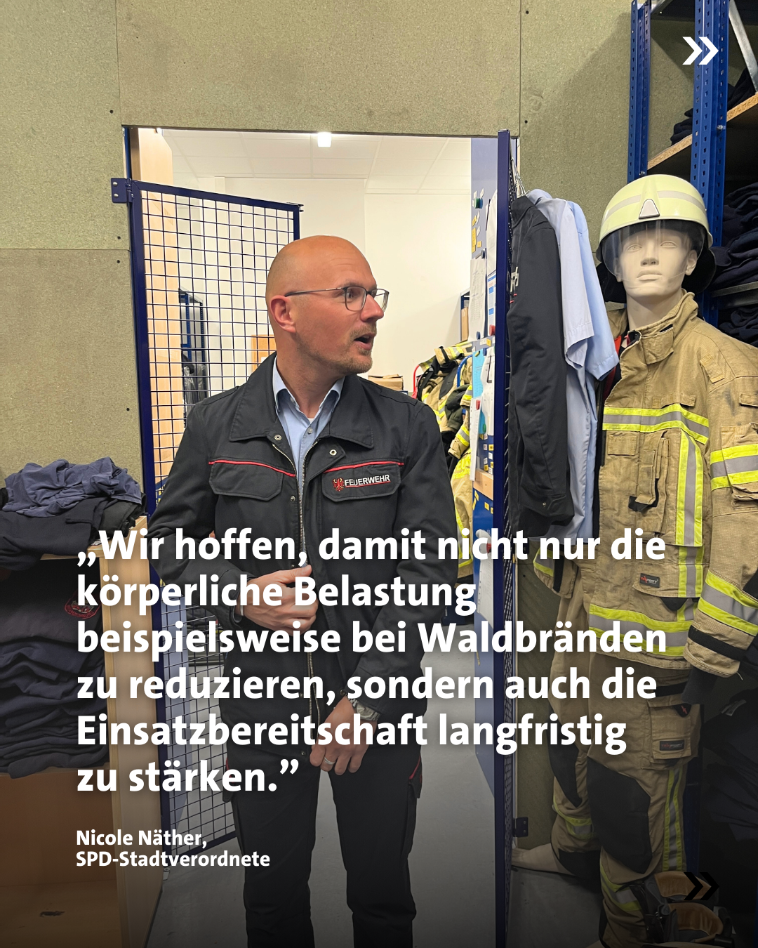 „Die leichtere persönliche Schutzausstattung, die auf unsere Initiative beschafft wird, ist ein wichtiger Schritt zur Entlastung der Kameradinnen und Kameraden im Einsatz.“, erklärte Stadtverordnete Nicole Näther, die sich besonders für diese Maßnahme eingesetzt hat. „Wir hoffen, damit nicht nur die körperliche Belastung beispielsweise bei Waldbränden zu reduzieren, sondern auch die Einsatzbereitschaft langfristig zu stärken.“ Und in den kommenden Wochen soll die Beschaffung der neuen Ausstattung abgeschlossen werden – ein Projekt, das auf Initiative der SPD-Fraktion hin angestoßen wurde.