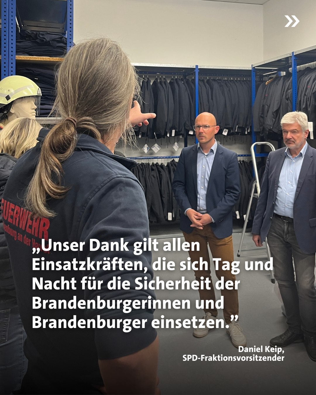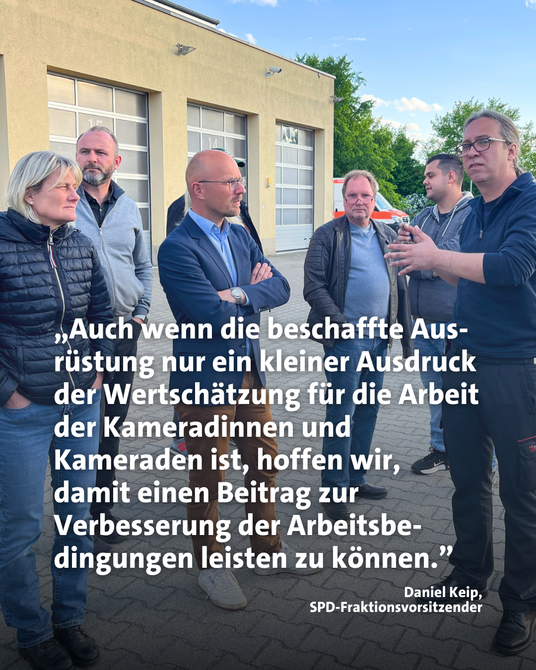 Die Fraktion nutzte den Termin, um sich vor Ort auch ein Bild von weiteren Verbesserungsmöglichkeiten zu machen. „Die angesprochenen Anliegen und Hinweise nehmen wir gerne mit in unsere politische Alltagsarbeit. Auch wenn die beschaffte Ausrüstung nur ein kleiner Ausdruck der Wertschätzung für die Arbeit der Kameradinnen und Kameraden ist, hoffen wir, damit einen Beitrag zur Verbesserung der Arbeitsbedingungen leisten zu können.“, fasste Keip abschließend zusammen.